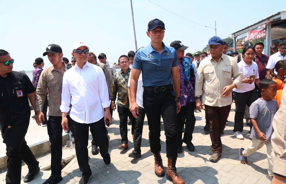 Wakil Gubernur Banten Achmad Dimyati Natakusumah mendampingi Menteri Koordinator (Menko) Bidang Infrastruktur dan Pembangunan Kewilayahan Agus Harimurti Yudhoyono (AHY) saat meninjau kawasan nelayan di Kecamatan Mauk, Kabupaten Tangerang, Kamis (16/4/2026). Keduanya meninjau lokasi pengembangan dan penataan kawasan permukiman nelayan.